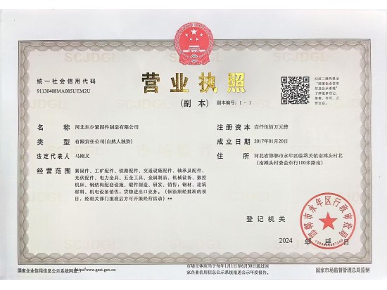 河北東少緊固件制造有限公司專注成就高品質產品        一般納稅人企業